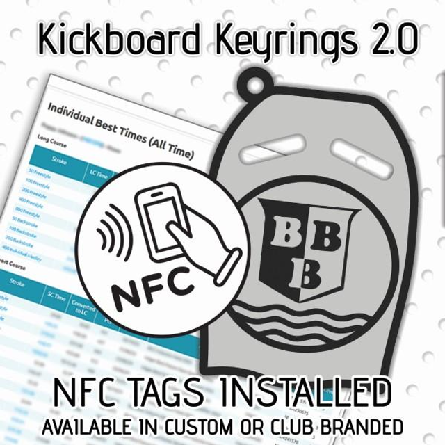 This swimming kickboard–style keyring features an integrated NFC tag that gives you instant access to your child’s individual personal bests on the Swim England website. Simply tap the keyring with any NFC-enabled smartphone and you’re taken straight to their results.