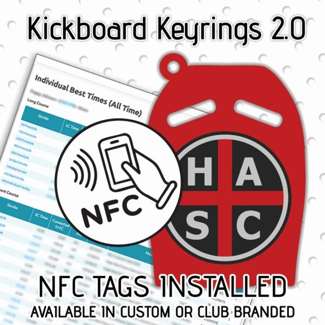This swimming kickboard–style keyring features an integrated NFC tag that gives you instant access to your child’s individual personal bests on the Swim England website. Simply tap the keyring with any NFC-enabled smartphone and you’re taken straight to their results.
